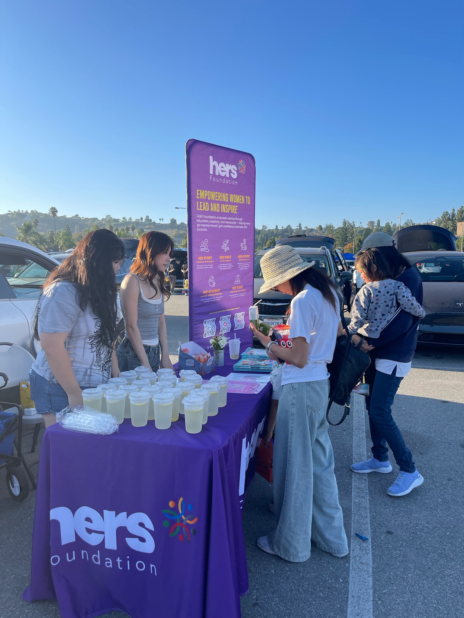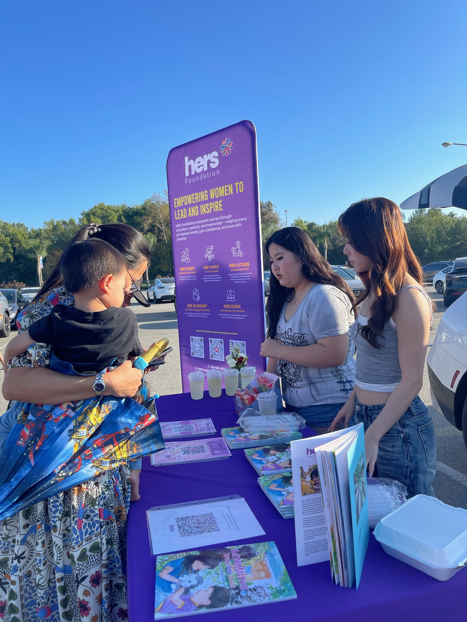 families. Children lined up for their drinks, parents stopped to chat, and many took the time to learn about our mission of empowering women through education, creativity, and storytelling.